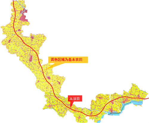 項(xiàng)目位于北方平原區(qū),沿線永久基本農(nóng)田占比較高,占沿線鄉(xiāng)鎮(zhèn)總用地比例53.6%,扣除建設(shè)用地、規(guī)劃建設(shè)用地及生態(tài)紅線后占比達(dá)77.7%;經(jīng)過(guò)反復(fù)比選、論證路線,通過(guò)主線平縱的靈活設(shè)計(jì),塊狀用地避讓永久基本農(nóng)田等綜合措施,最終占比為65.98%,大幅低于沿線永久基本農(nóng)田占比。