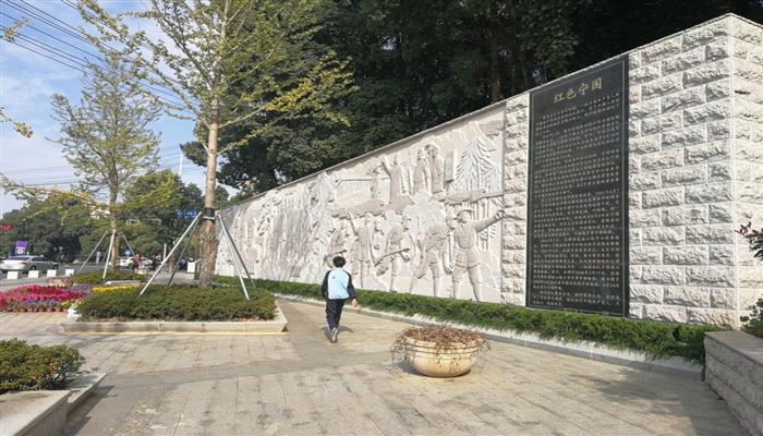 5)紅色文化廣場(chǎng)設(shè)計(jì)理念。將陵園門口原空地及道路改造后形成的三角形地塊,綜合打造成街頭游園,滿足路人短時(shí)間的游憩需求。